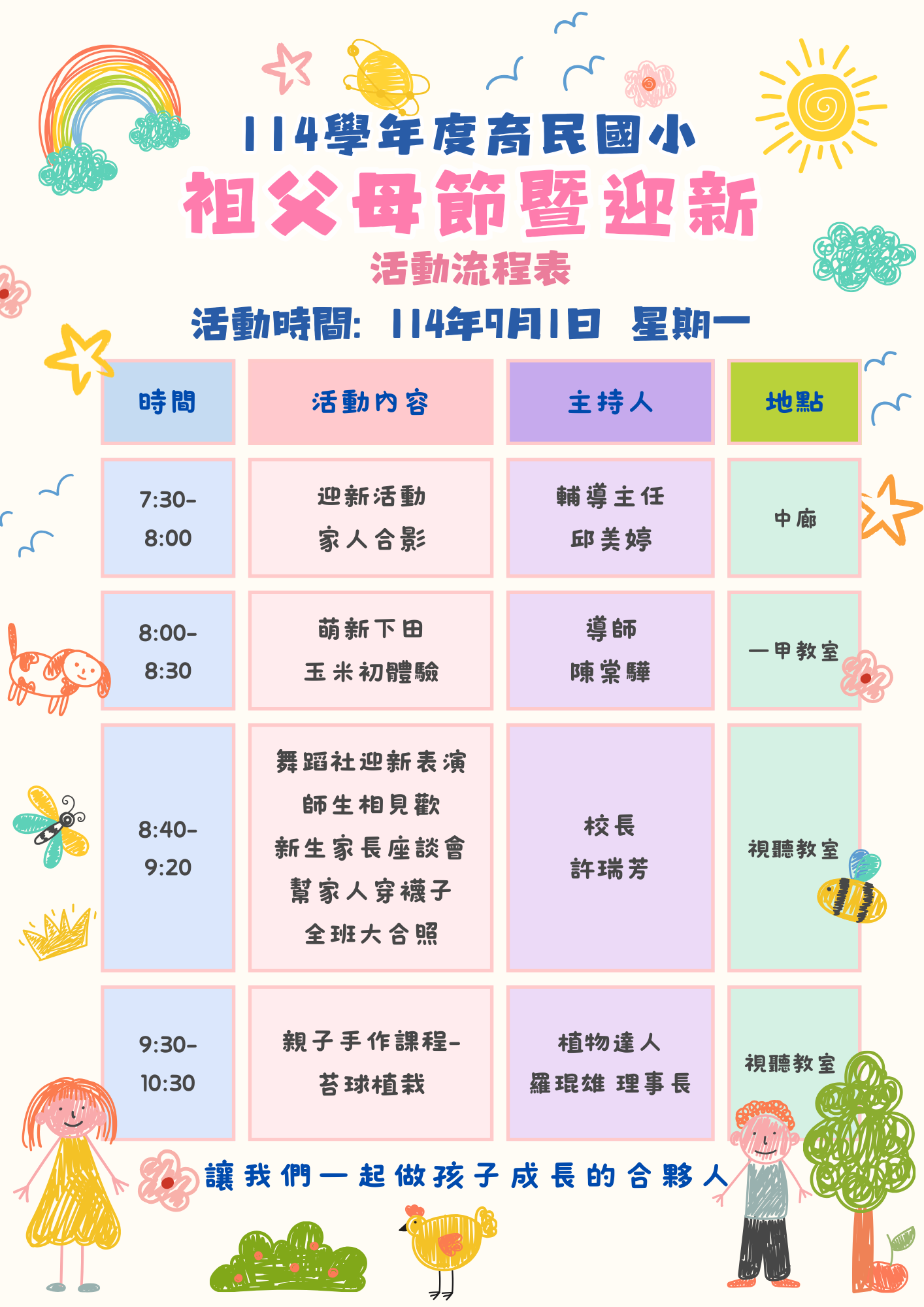 彰化縣秀水鄉育民國小114學年新生開學注意事項
